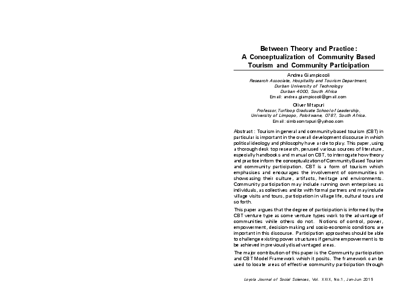 Pdf Between Theory And Practice A Conceptualization Of Community Based Tourism And Community Participation Oliver Mtapuri Academia Edu Tourism Authority Of Thailand Logo Png