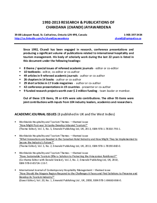 Pdf Research Publications 1992 2014 Of Chandana Chandi Jayawardena Chandi Jayawardena Academia Edu Hawaii Tourism Maui