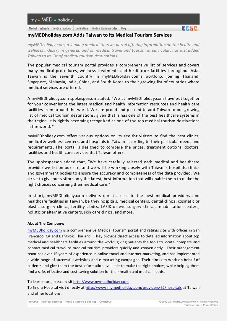 Mymedholiday Com Adds Taiwan To Its Medical Tourism Services Tourism Malaysia Kuantan