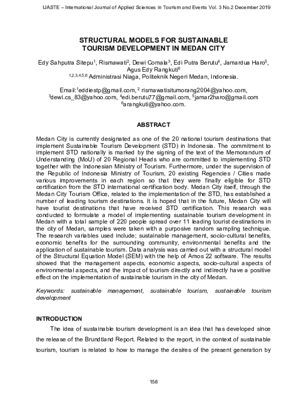 Pdf Structural Models For Sustainable Tourism Development Std In Medan City Edy Sahputra Sitepu And Dewi Comala Academia Edu Hospitality And Tourism Careers List