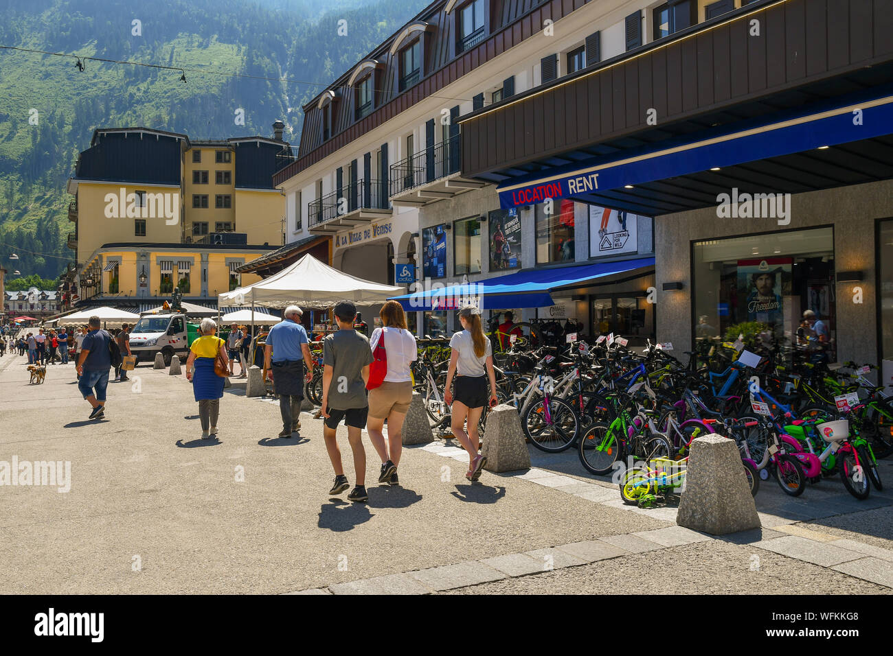 Street View With Tourists Walking In Front Of A Bicycle Shop With Bikes For All Ages On The Sidewalk In A Summer Day Chamonix Mont Blanc France Stock Photo Alamy Australia Dan Malaysia Merupakan Batas Wilayah Indonesia Bagian