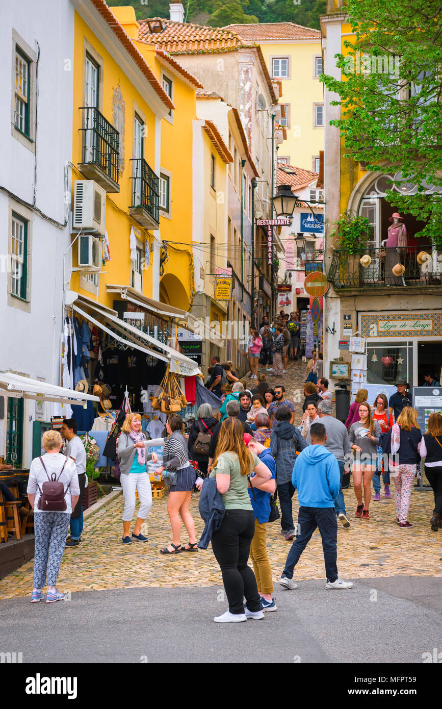 Sintra Portugal View Of Tourists In A Street In The Center Of Sintra Portugal Stock Photo Alamy Tourism Meaning In Law