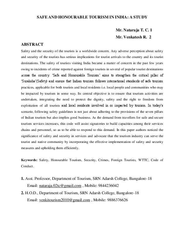 Pdf Safe And Honourable Tourism In India A Study Nataraja T C Nataraja T C Academia Edu Tourism Meaning Hindi