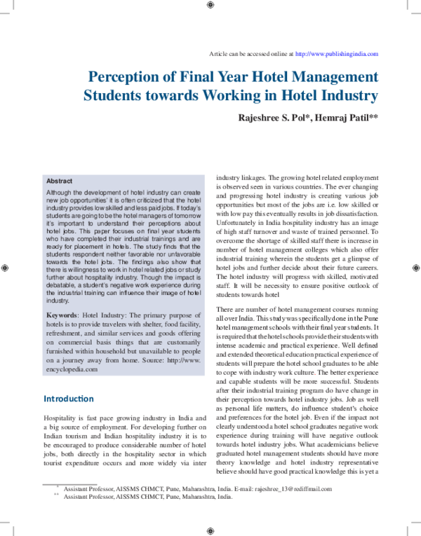 Pdf Perception Of Final Year Hotel Management Students Towards Working In Hotel Industry Achal Bisht Academia Edu Tourism Malaysia Facebook