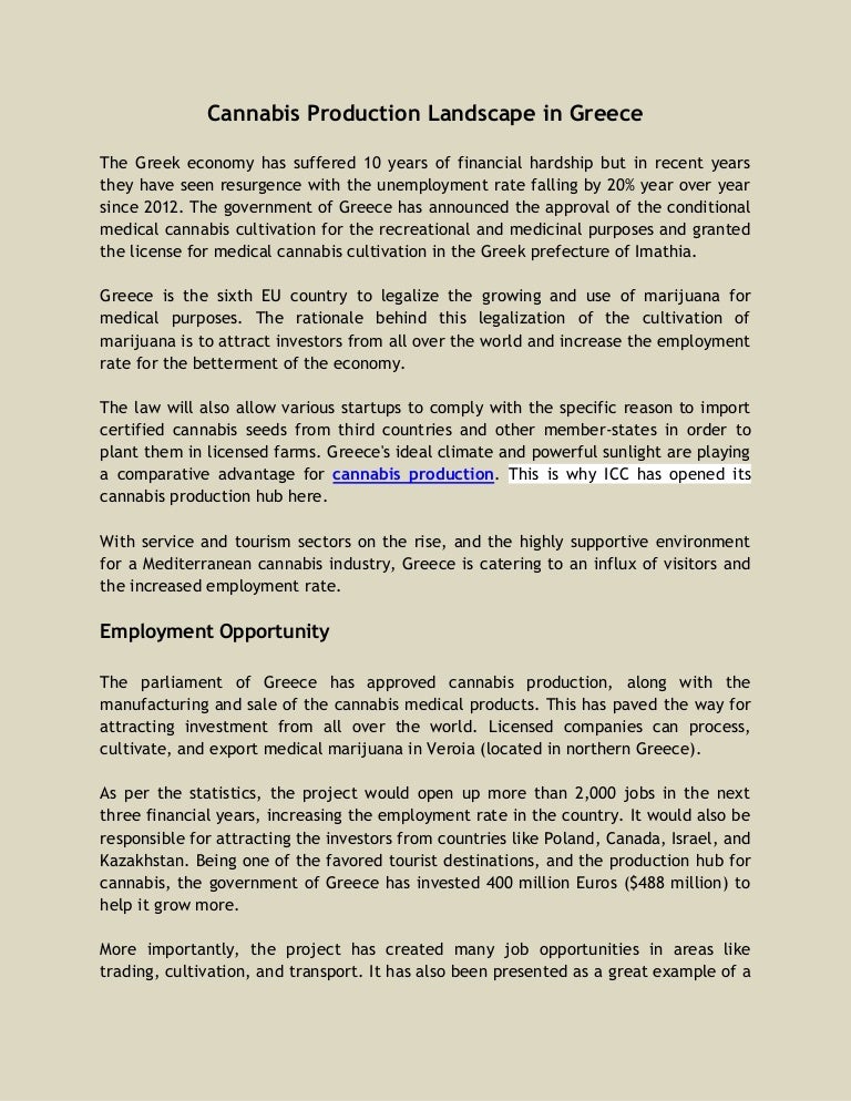 Cannabis Production Landscape In Greece Hospitality And Tourism Year 2
