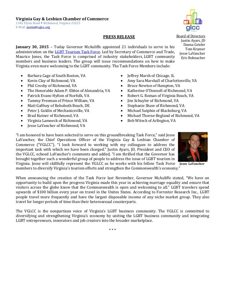 Virginia Gay Lesbian Chamber Of Commerce Is Appointed To Virginia S Tourism Course In New York