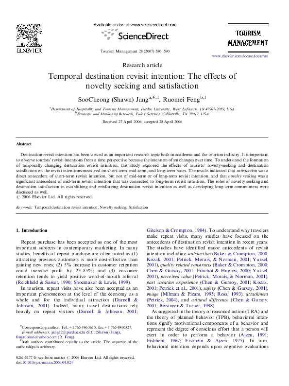 Pdf Temporal Destination Revisit Intention The Effects Of Novelty Seeking And Satisfaction Rachana Phem Academia Edu Tourism Ministry News