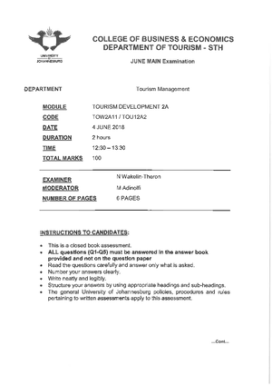 Exam June Questions Tourism Development 2a Tow2a11 Uj Studocu Hospitality And Tourism Jobs In New Zealand