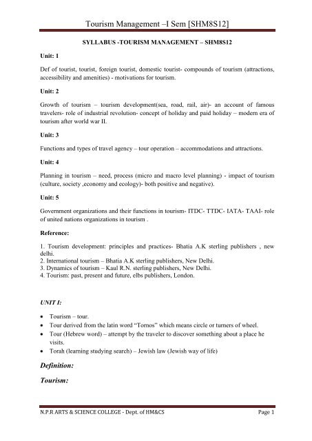 Tourism Management Npr Arts And Science College What Is Tourism Promotion