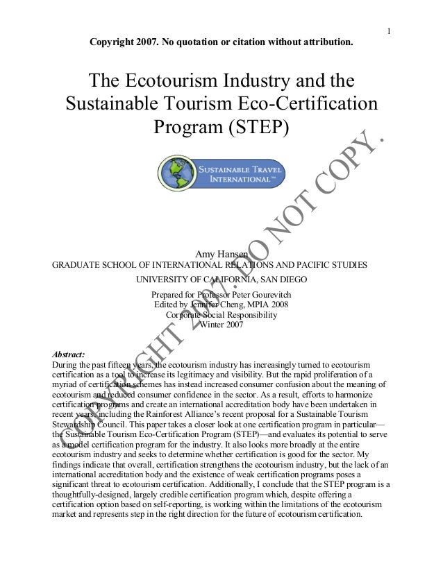 Ecotourism Industry And The Sustainable Tourism Eco Certification Pro Tourism In India Project Topics