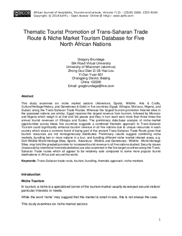 Pdf Thematic Tourist Promotion Of Trans Saharan Trade Route Niche Market Tourism Database For Five North African Nations Greg Brundage Academia Edu Tourism Journal India