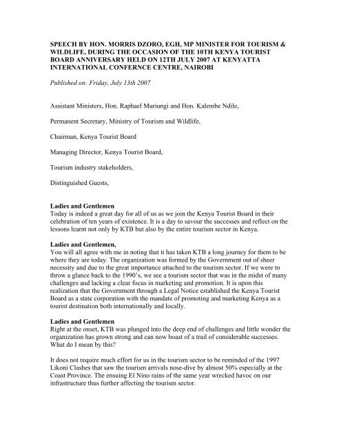 Speech By Hon Morris Dzoro Egh Mp Minister For Tourism What Is Tourism Entrepreneurship Pdf