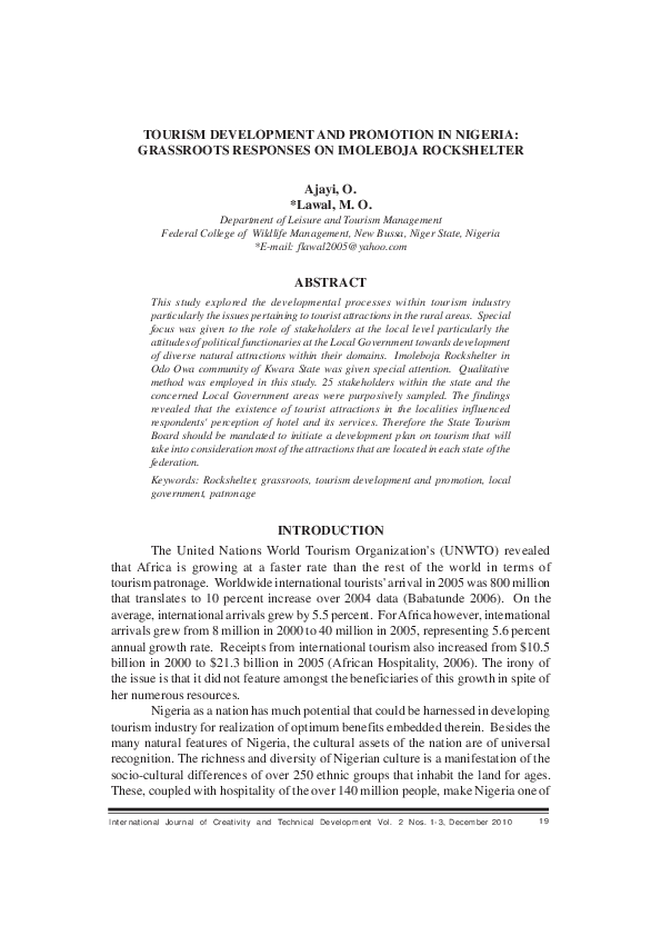Pdf Tourism Development And Promotion In Nigeria Grassroots Responses On Imoleboja Rockshelte Musediq Olufemi Lawal Academia Edu What Is Tourism Products And Examples