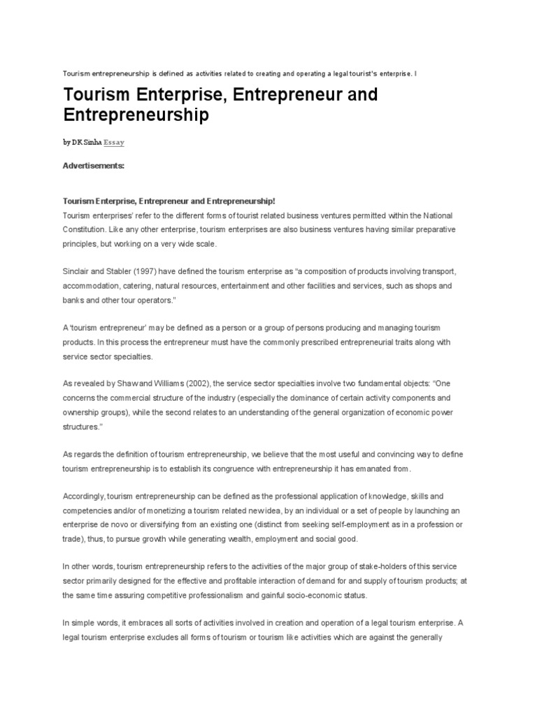 Tourism Enterprise Entrepreneurship Tourism Free 30 Day Trial Scribd Hawaii Tourism Phone Number